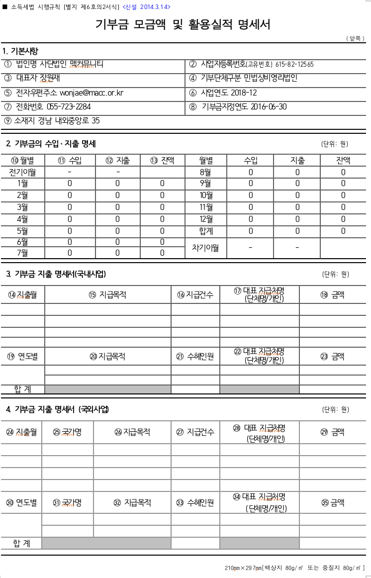 | 2016년 연간 기부금 모금액 및 활용실적 명세 (0) | 2018.04.16 |
